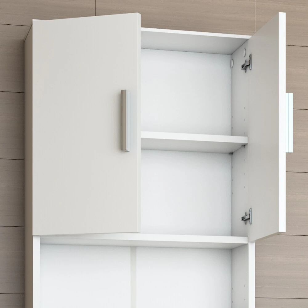 Mit seiner glatten, weißen Oberfläche ist der Schrank vielseitig kombinierbar und passt sich ideal in jedes Wohnambiente ein.