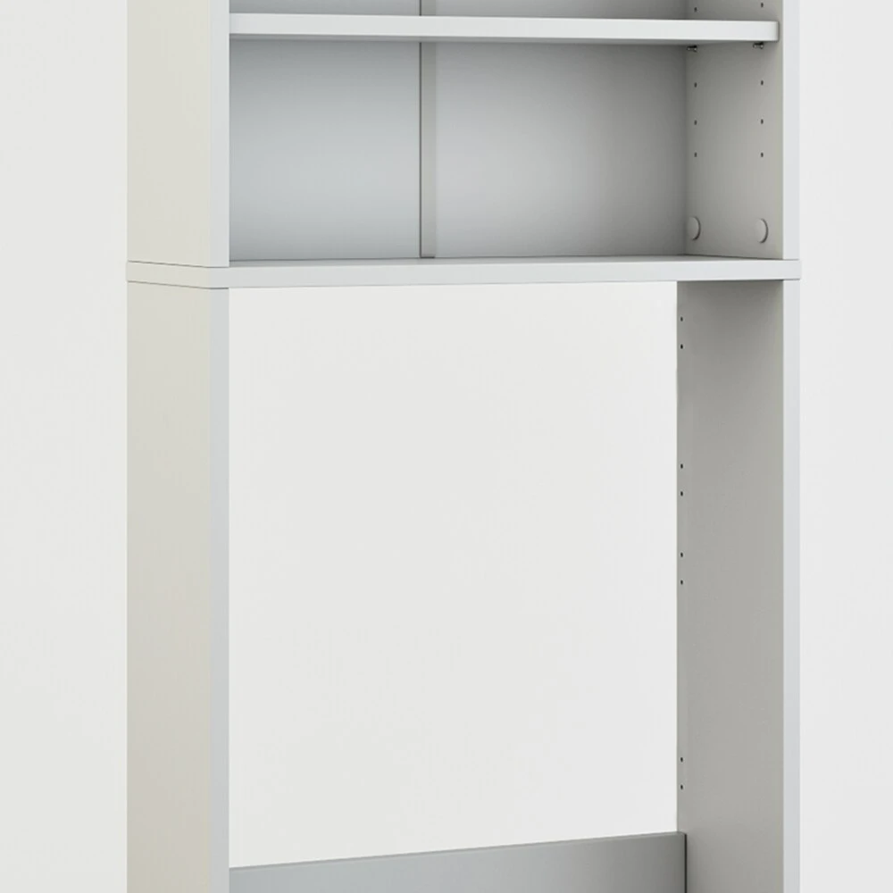 Hinter den Türen, im oberen Bereich des Schranks, befindet sich ein verstellbarer Fachboden, der ein komfortables Anordnen des Schrankinhalts ermöglicht.