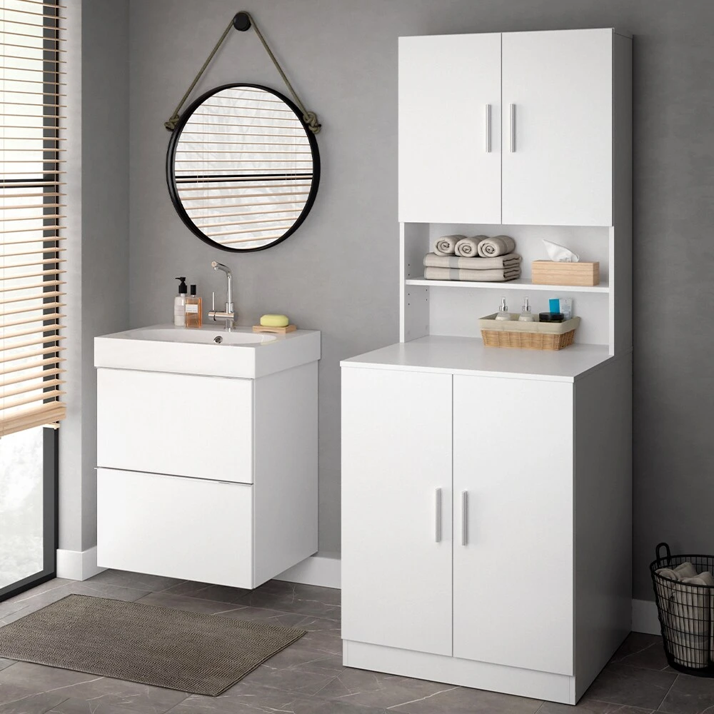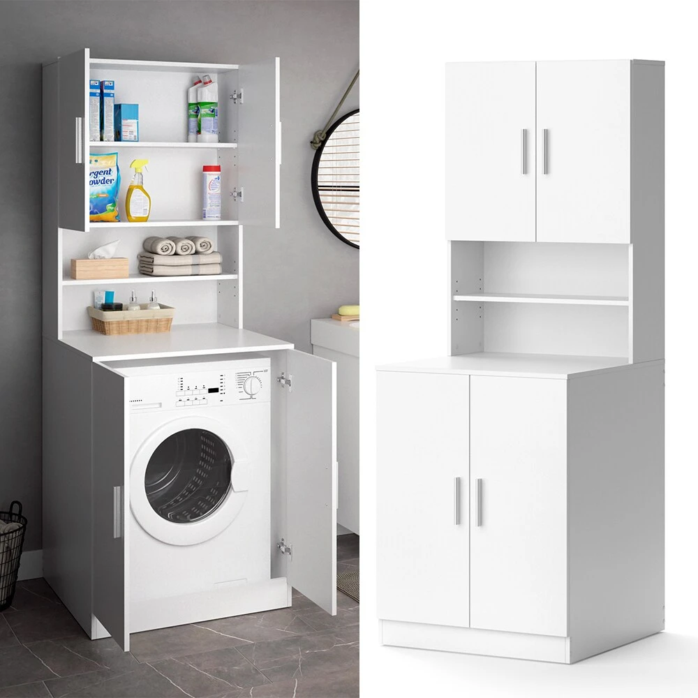 Mit unserem Waschmaschinenschrank können Sie den Stellplatz Ihrer Waschmaschine optimal nutzen. Er bietet direkt über der Waschmaschine außerordentlich viel Platz für Wäsche, Pflegeartikel, Reinigungsmittel und andere nützliche Dinge. Hinter den beiden geschlossenen Türen, befindet sich jeweils ein verstellbarer Einlegeboden. Sie möchten Ihre Räumlichen aufwerten? Unser praktischer Schrank bietet nicht nur viel Stauraum, sondern lässt Ihre Waschmaschine einfach verschwinden.