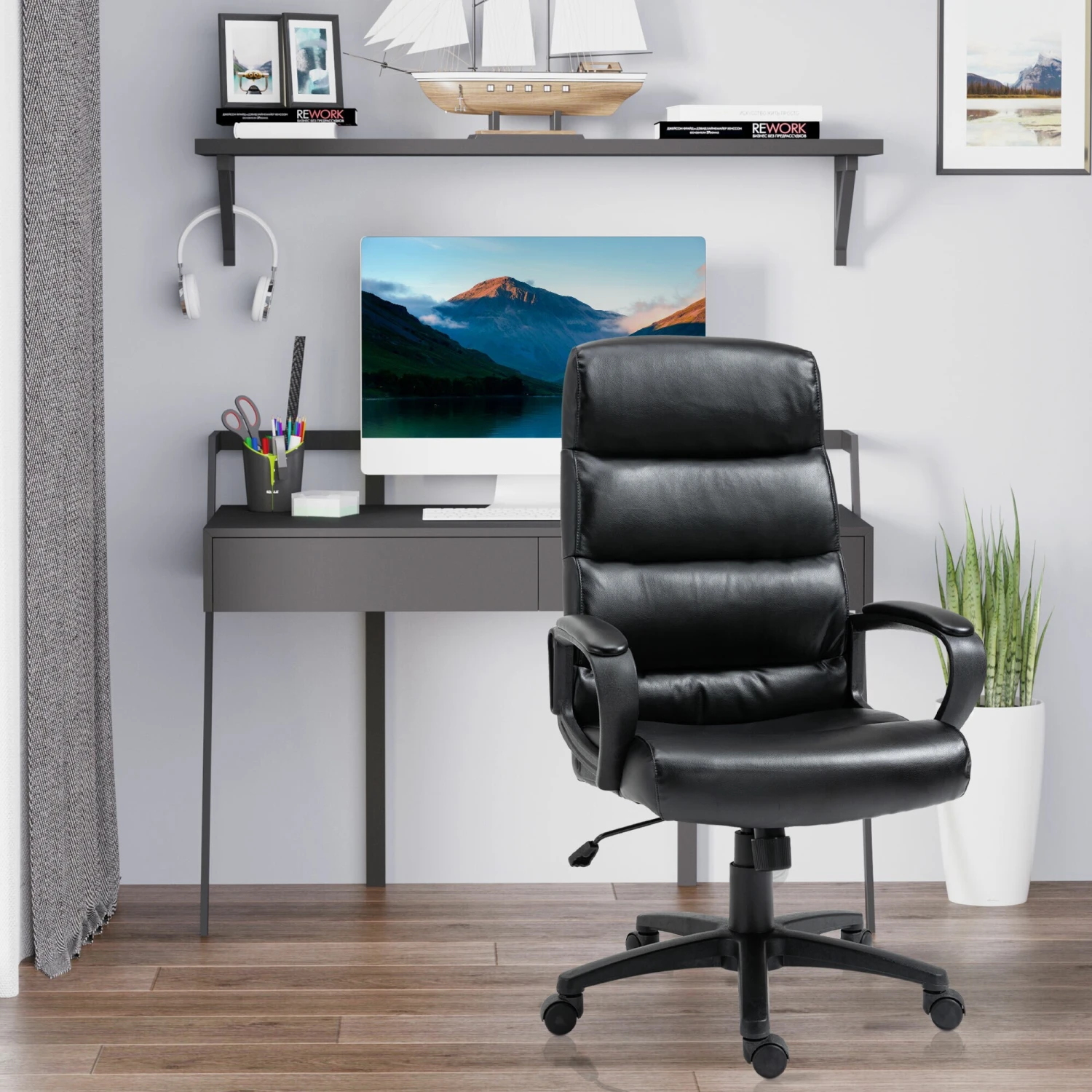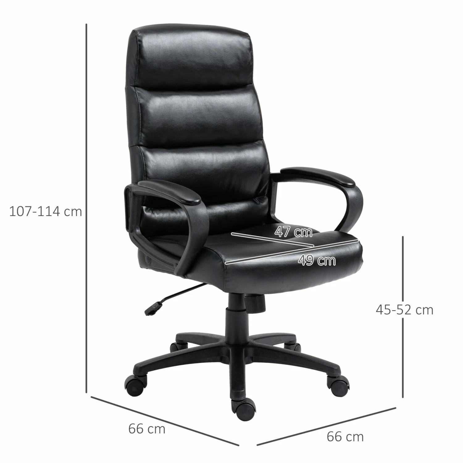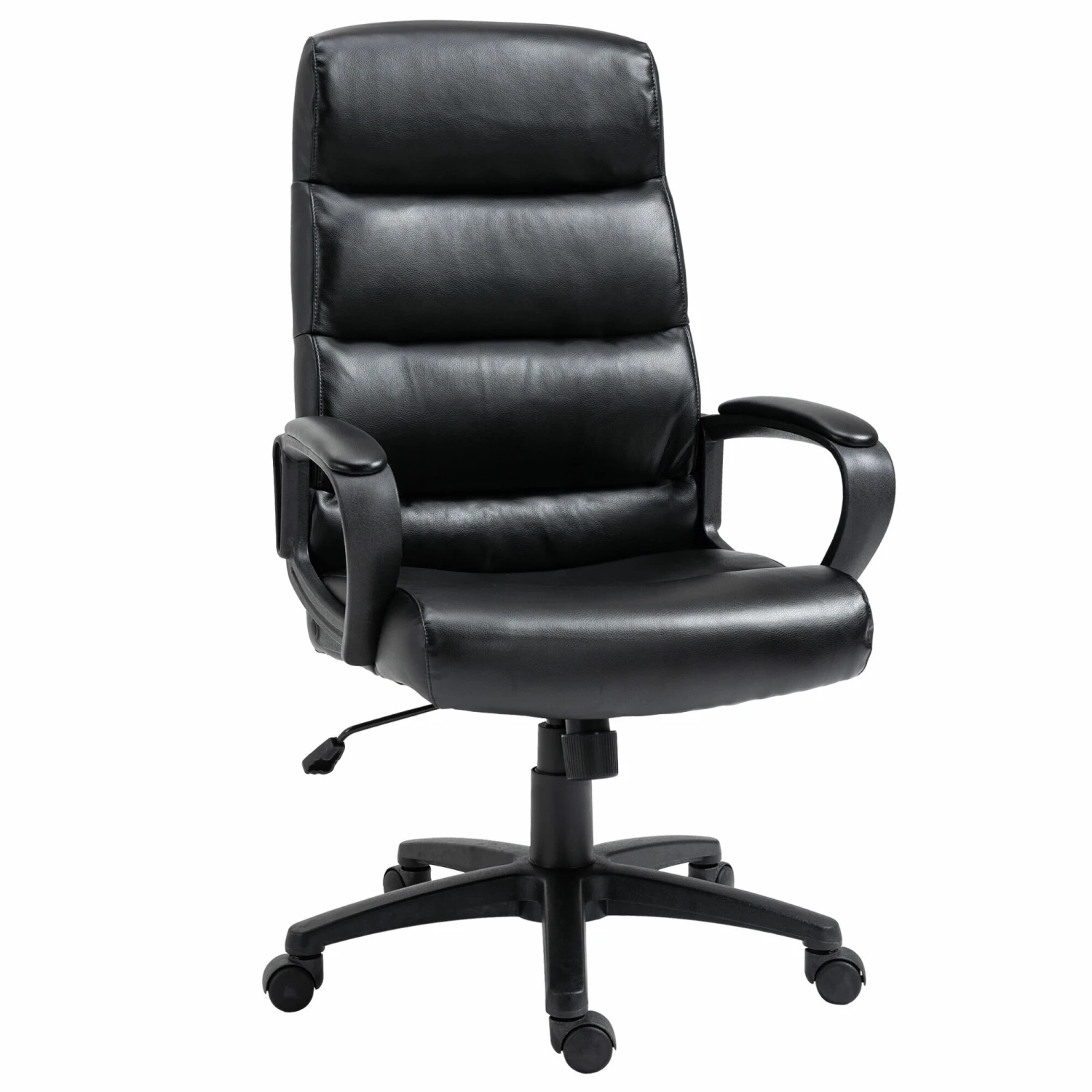Dieser Bürostuhl von Vinsetto bietet Sitzkomfort auf höchstem Niveau. Mit hoher Rückenlehne, Armlehne und gepolsterter Sitzfläche können Sie sich auf die Arbeit konzentrieren und gleichzeitig bequem sitzen. Dieser mit Kunstleder bezogene Bürostuhl kann mit einem feuchten Tuch gereinigt werden. Die Sitzhöhe ist einstellbar, um besser sitzen zu können. Leichtgängige Rollen ermöglichen es Ihnen, den Stuhl einfach zu leicht zu bewegen.