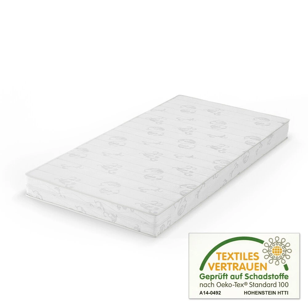 • Die Kinderbettmatratze ist frei von Klebstoffen und Metallen, der Bezug hat einen hautsympathischen Oberstoff, ist sehr strapazierfähig und mit atmungsaktiver Klimafaser versteppt.