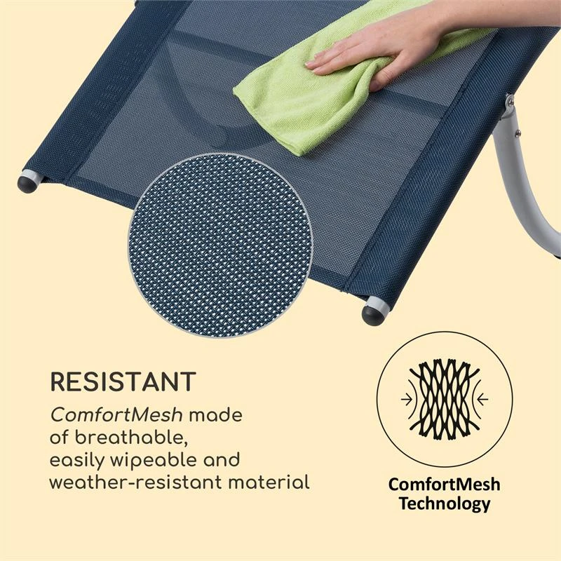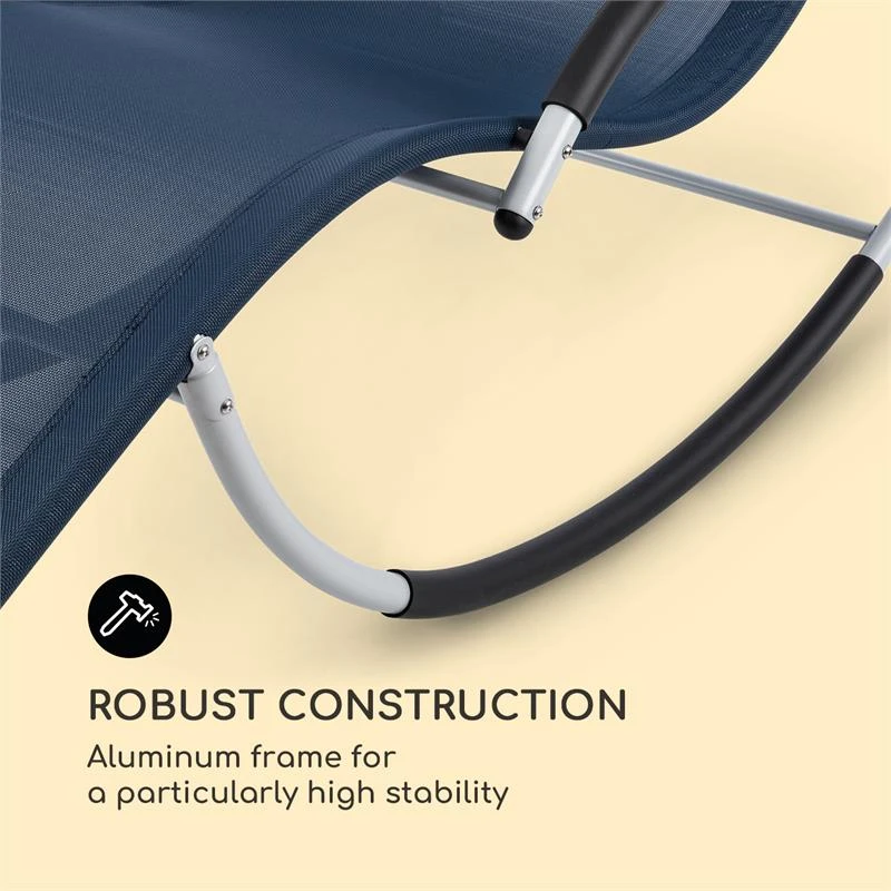 Blumfeldt Westwood Rocking Chair Schaukelliege Liegestuhl | 164 x 83 x 65 cm (BxHxT) | Ergo Comfort: ergonomische Liegefläche | Ergo Relax: verstellbares, abnehmbares Kopfkissen | comfortMesh: atmungsaktives Material | Aluminium-Rahmen | Schrauben aus Edelstahl | Polyester | dunkelblau