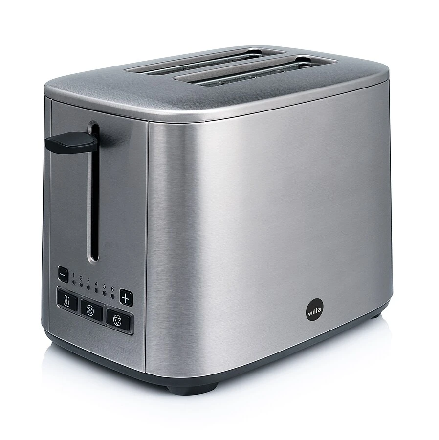 Der Toaster CT-1000S von Wilfa ist klein und kompakt und verfügt über ein leistungsstarkes Heizelement für sehr schnelles Toasten bei 1000 Watt Leistung. Mit seinem stilvollen Edelstahldesign schmückt er jeden Frühstückstisch sowie auch jede Küche – er wird zu einem absoluten Hingucker. Dank der Hochstellfunktion ist es möglich, nach dem Toasten leichter auf die Brotscheiben zugreifen zu können. Der Toaster verfügt über verstellbare Hitzeeinstellungen, um jeder Vorliebe gerecht zu werden – egal ob hell oder sehr knusprig, mit Wilfas CT-1000S ist alles möglich. Zusätzlich hat der Toaster eine separate Auslösetaste zum Auftauen, Aufwärmen und eine Abbrechfunktion. Somit ist es kein Problem eingefrorene Brötchen oder Brötchen vom Vortag ganz schnell verzehrfertig und lecker zu servieren. Genießen Sie dank dem Toaster von Wilfa schon morgens ihr Frühstück und starten so gut in den Tag.