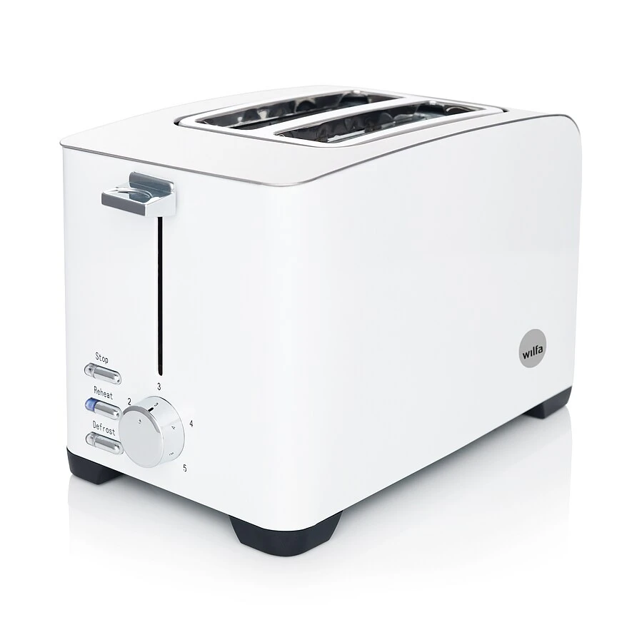 - Zwei extra große Schlitze, sodass Sie problemlos zwei dicke Scheiben Brot toasten können