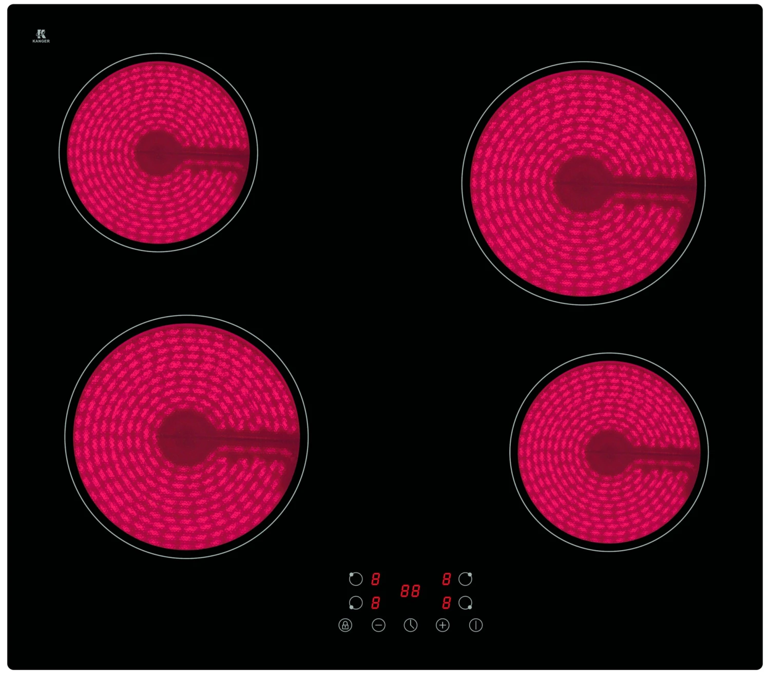 Das autarke Glaskeramik Kochfeld CALOR EBK4 ist das ideale Kochfeld für Ihre Küche. Dank der 4 Kochfelder (2x 15,5 cm + 2x 19 cm) bereiten Sie Ihre Lieblingsspeisen im Handumdrehen zu.