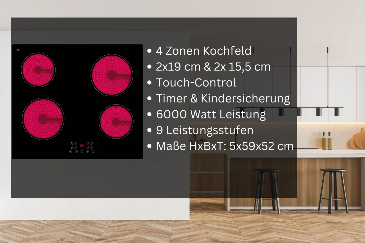 - Gerätemaß Kochfeld (HxBxT) 5,00 x 59,00 x 52,00 cm